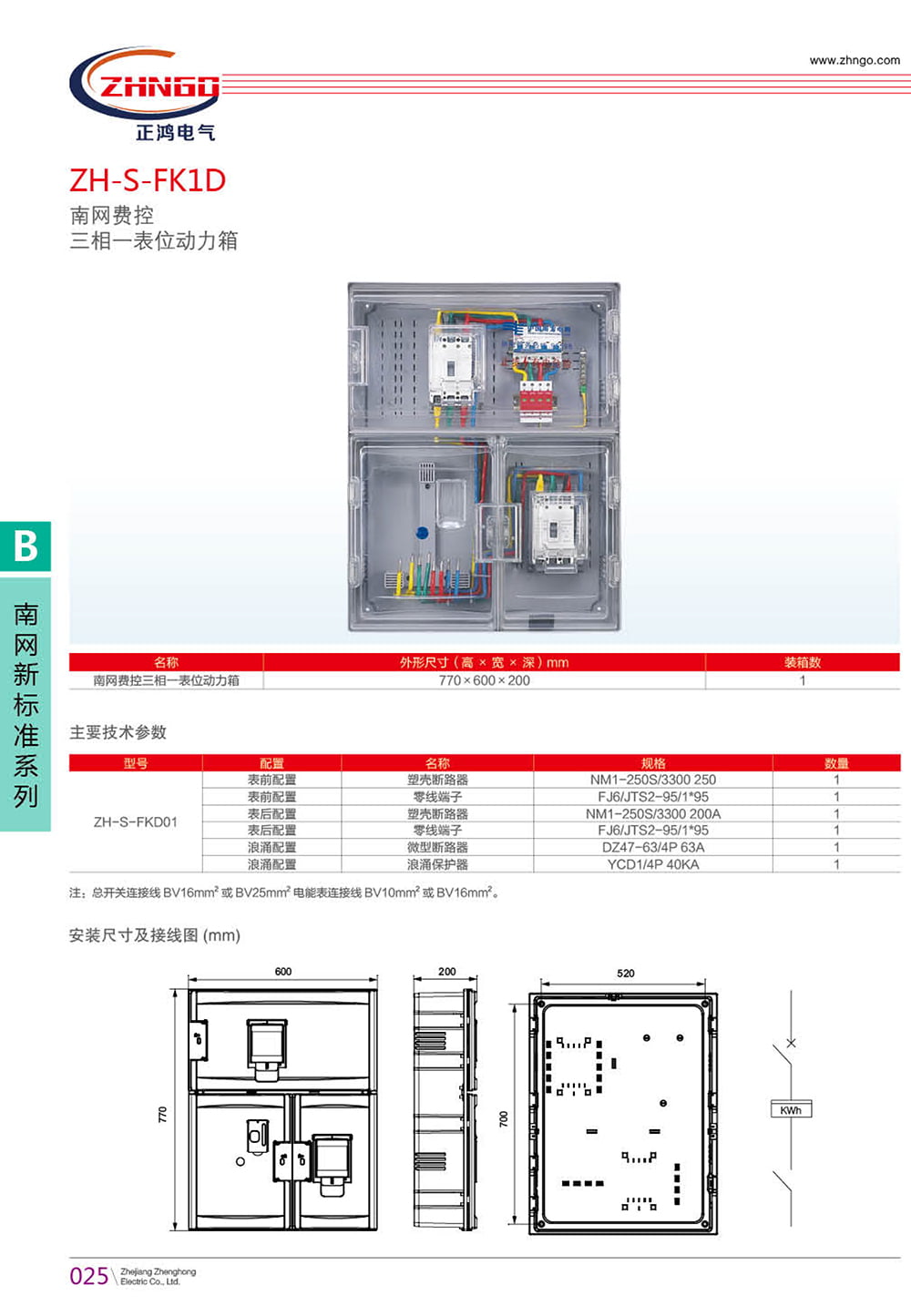 注:總開關連接線 BV16mm 2 或 BV25mm 2 電能表連接線 BV10mm 2 或 BV16mm 2 。