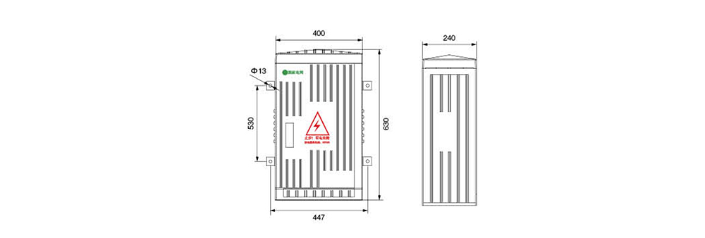 懸掛式:一種變壓器上常用的分支箱樣式 , 安裝方式主要固定在兩個(gè)電線桿中間的橫梁上。
