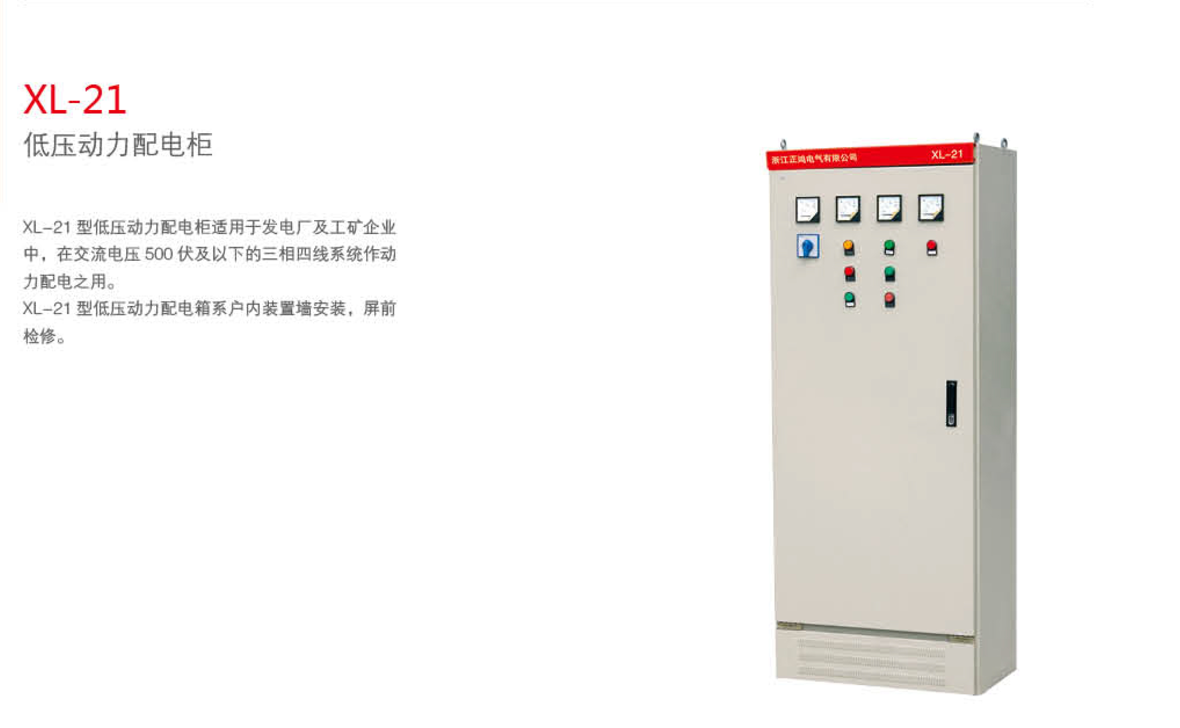 XL-21 型低壓動力配電箱系戶內(nèi)裝置墻安裝,屏前檢修。