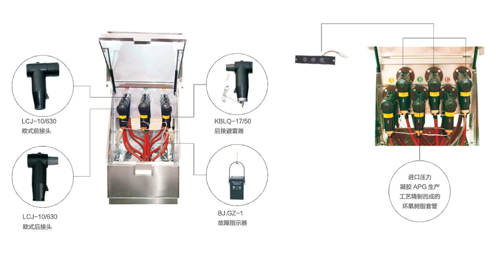 歐式電纜分接箱是近年來廣泛用于電力配網(wǎng)系統(tǒng)中的電纜化工程設(shè)備,它的主要特點是雙向開門、利用穿墻套管作為連接母排,具有長度小、電纜排列清楚、三芯電纜不需要大跨度交叉等顯著優(yōu)點。其所采用的電纜接頭符合 DIN47636 標(biāo)準(zhǔn)。一般采用額定電流 630A 螺栓固定連接式電纜接頭。