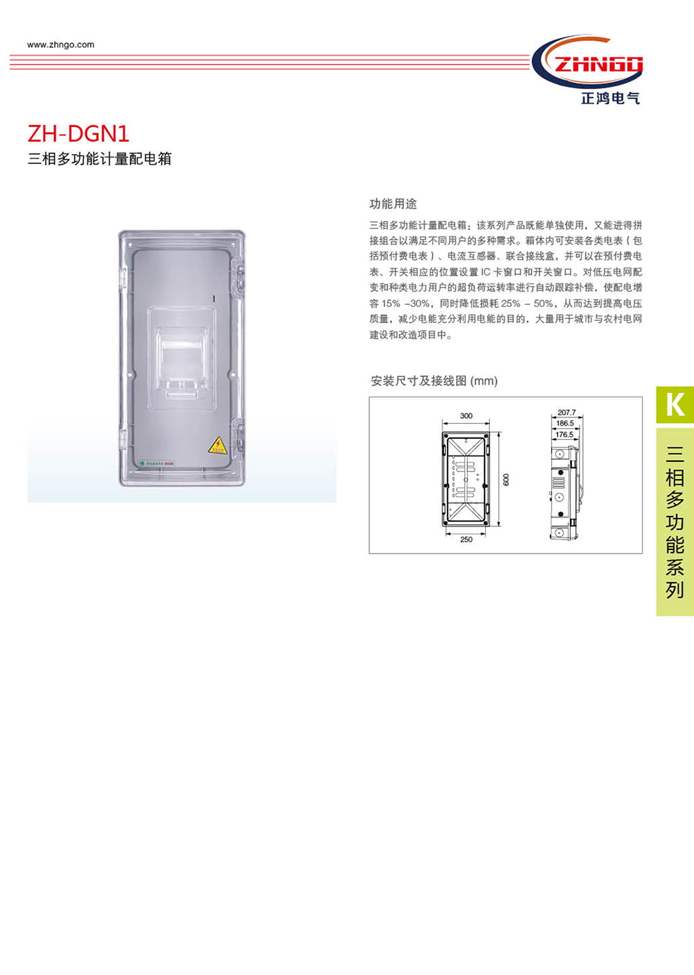 三相多功能計(jì)量配電箱:該系列產(chǎn)品既能單獨(dú)使用,又能進(jìn)得拼接組合以滿足不同用戶的多種需求。箱體內(nèi)可安裝各類電表(包括預(yù)付費(fèi)電表)、電流互感器、聯(lián)合接線盒,并可以在預(yù)付費(fèi)電表、開關(guān)相應(yīng)的位置設(shè)置 IC 卡窗口和開關(guān)窗口。對(duì)低壓電網(wǎng)配變和種類電力用戶的超負(fù)荷運(yùn)轉(zhuǎn)率進(jìn)行自動(dòng)跟蹤補(bǔ)償,使配電增容15% -30%,同時(shí)降低損耗 25% - 50%,從而達(dá)到提高電壓質(zhì)量,減少電能充分利用電能的目的,大量用于城市與農(nóng)村電網(wǎng)建設(shè)和改造項(xiàng)目中。